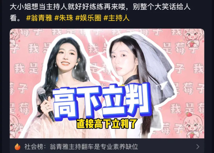 说到《心动的信号》,因为翁青雅这次主持的争议,曾在节目中和她有过罅隙的孙乐言也被拉出比较,