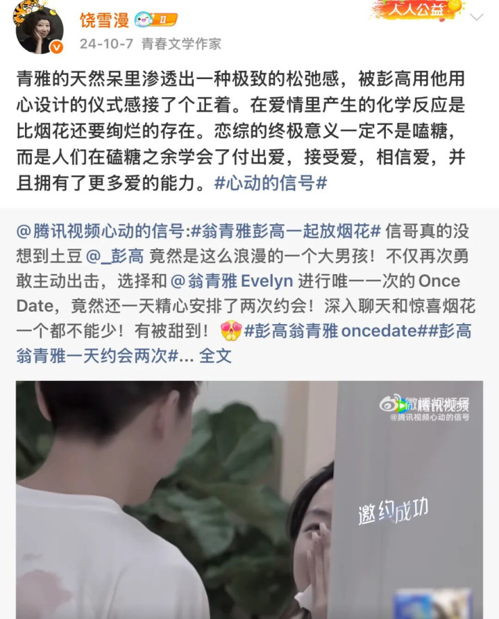 热度最高的翁青雅和彭高,却从官宣在一起到分手仅用了十天,被称为“恋综史上最快be”,成了很多人的意难平。